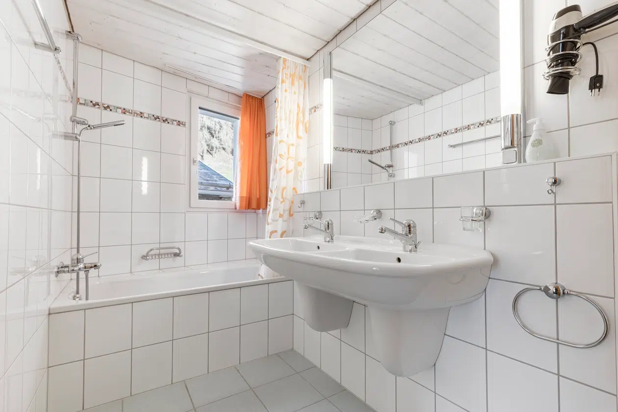 Hell, geräumig und ideal für Paare oder Familien – das Apartment bietet zwei Doppelzimmer, eine voll ausgestattete Küche und einen gemütlichen Wohnraum mit TV. Zwei Balkone mit Bergblick, zwei Bäder und ein separates WC sorgen für extra Komfort. Badetücher und Küchenwäsche inklusive.