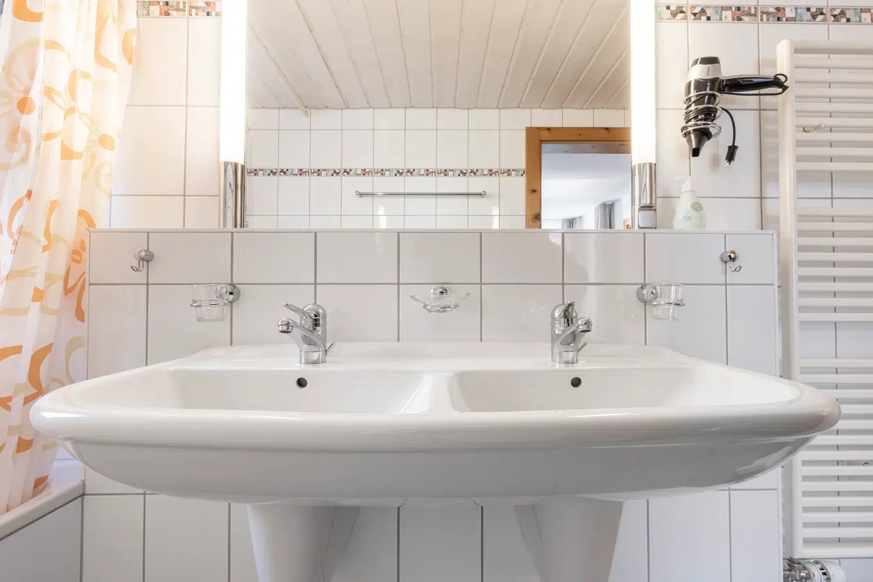 • Duschgel, Shampoo und Haartrockner im Bad